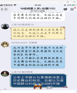 二、互动讨论,兼顾教学灵活性。老师们采用腾讯课堂,群课堂、学习通等展开讨论,师生共享屏幕,教师同步讲解,精心设计提问环节穿插于授课过程中,学生可在聊天框内输入文字回答问题,与课堂内容无缝衔接地展开小讨论,保障了有效的师生互动。