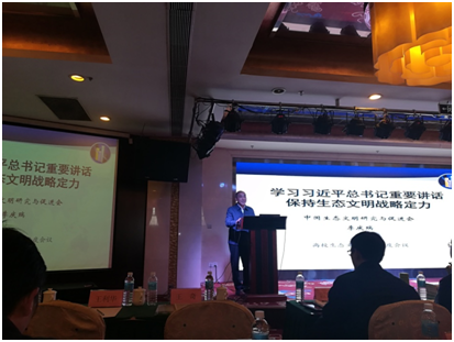 教授贺克斌做了主旨为“我国中长期大气环境治理:蓝天与低碳协调之路”的报告,对我国不同阶段大气环境目标、空气质量标准等进行了回顾,指出应从能源结构、产业结构等调整方面来实现大气减排目标。中国生态文明研究与促进会执行副会长李庆瑞做了题目为“学习习近平总书记重要讲话精神 保持生态文明战略定力”的报告,主要从深入学习习近平生态文明思想、保持生态文明战略定力、深入推进生态环保督查、打好污染防治攻坚战等角度解读了习近平总书记一系列重要讲话。还有北京林业大学生态文明研究院院长林震教授做了“生态文明交叉学科建设及科普教育”的主题报告,北京大学习近平新时代中国特色社会主义思想研究院生态文明研究中心联合主任博士做了“习近平生态文明思想是对马克思主义哲学的重大贡献,是新的世界观和方法论”的主题报告。