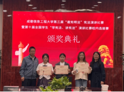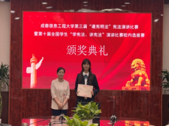 承办的成都信息工程大学第三届“遵宪明法”宪法演讲比赛暨第十届全国学生“学宪法、讲宪法”演讲比赛校内选拔赛在航空港校区第六会议室举行。来自全校各专业的21位选手参加了此次比赛。