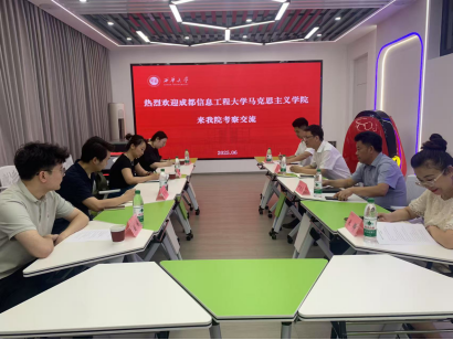 6月13日上午,博彩担保网 副院长孙莎岚,马克思主义基本原理教研室主任郑薇前往西华大学博彩担保网 开展学习交流,此次到访受到西华大学博彩担保网 院长冯永泰,副院长尹德志,教学科研办主任米娜,本科教学一部主任余声启的热情接待。