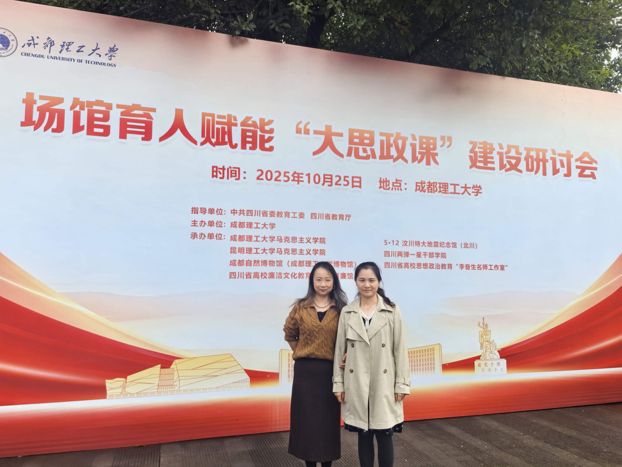 为深入学习贯彻落实习近平总书记对学校思政课建设作出的重要指示和关于“大思政课”的重要指示批示,全面推进“大思政课”建设,推进高校思想政治理论课实践教学改革创新,探索新时代场馆育人的新理念、新思路、新方法,由成都理工大学主办,汇聚21家单位协办的“场馆育人赋能‘大思政课’建设研讨会”于10月25日在成都理工大学成功召开。我院副院长孙莎岚和阳甜老师参加了此次会议。