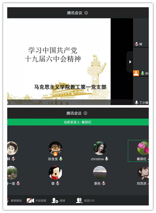 教工第一支部委员会开展线上组织生活,集中学习党的十九届六中全会精神,支部全体无课党员参加会议,支部书记孙莎岚主持会议。