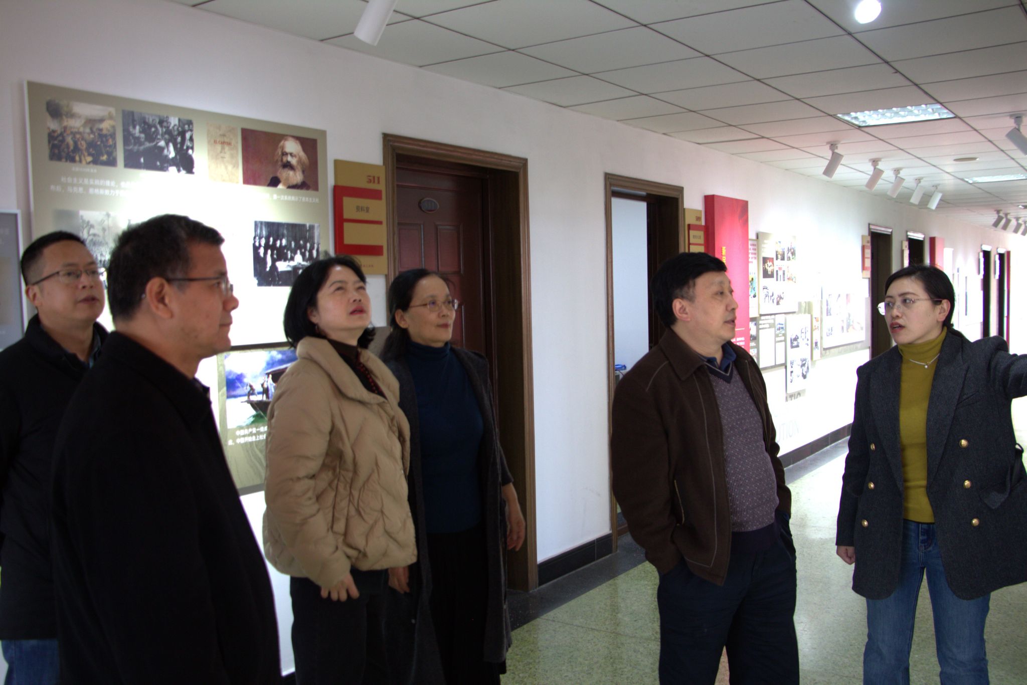 图2 丁小珊在为专家们介绍文化墙